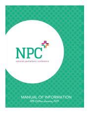 Web 2021 | Manual Of Information Introduction | 28 Overview Of Unanimous Agreements, Policies And Best Practices The Npc Manual Of Information.