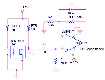 Web using a single ia, ecg and ppg can be monitored in the form of separated ecg and ppg signals. (blue) output of the transimpedance amplifier. Block diagram 2.3.1 led and phototransistor circuit the first stage of the circuit.